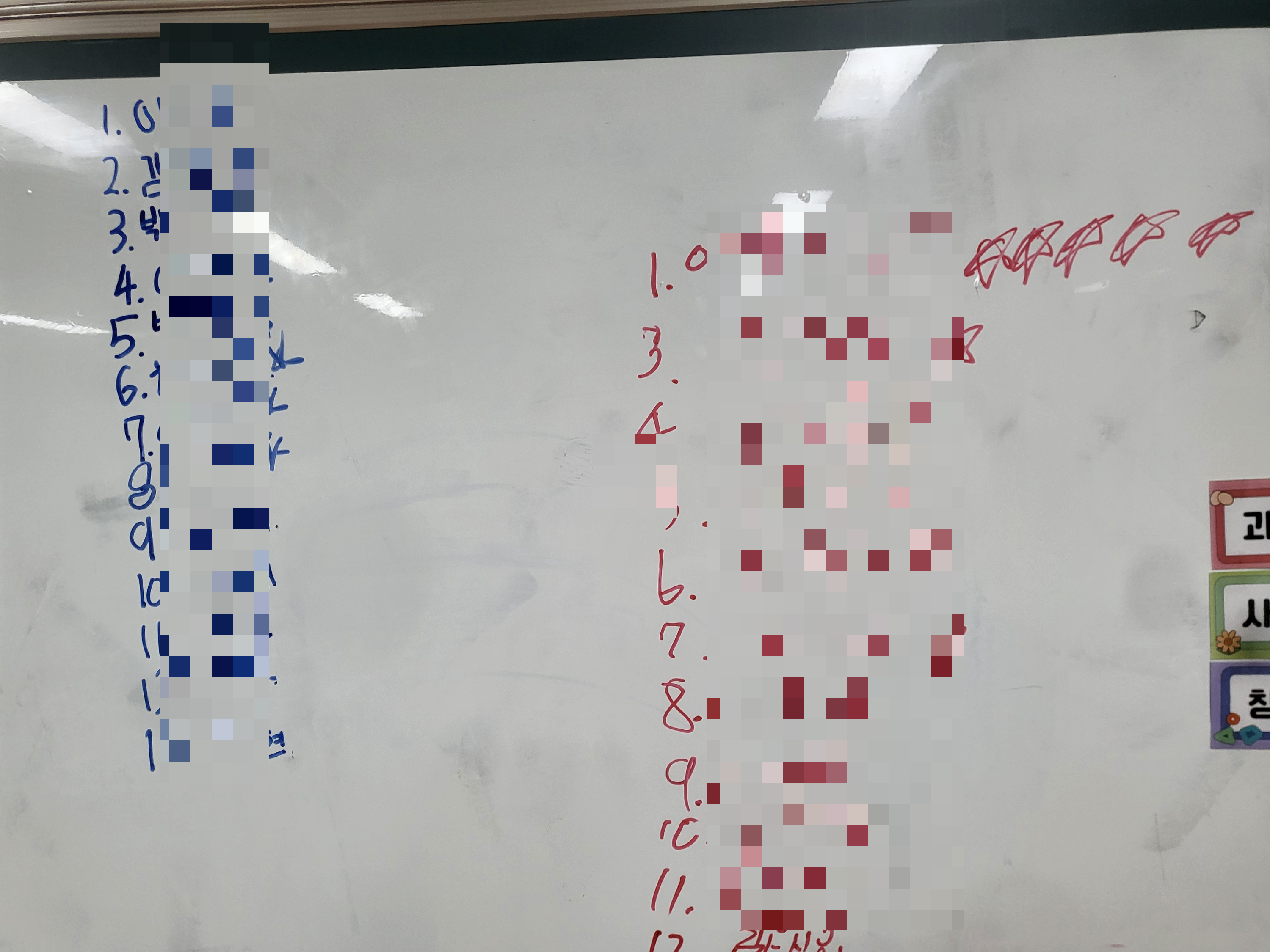 그 다음으로 우리반 친구들 이름을 적었다 글시체가 이상하다;;;