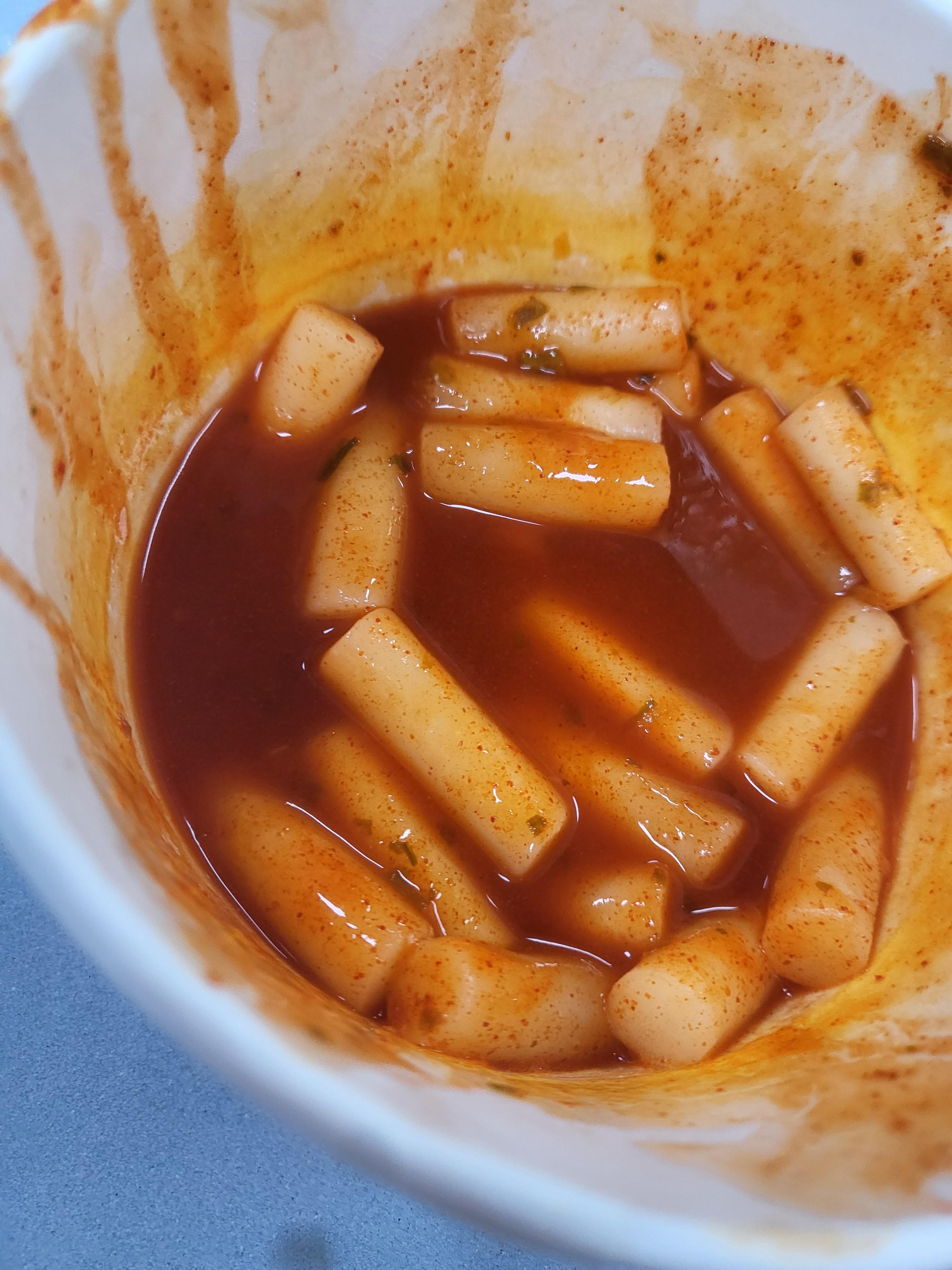 가방에 있는 떡볶이를 꺼내서 선생님한테 먹어도 되냐고 했는데 된다고해서 먹었다 맛있었는데 좀 매웠다